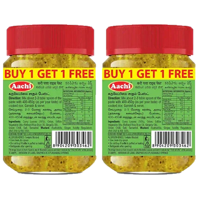 Packed in a 200g resealable jar, this paste is ideal for busy kitchens, offering a quick, no-fuss solution for flavorful meals. The Buy 1 Get 1 Free pack ensures you’re always stocked up for an instant curry leaf rice fix.