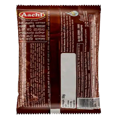 Aachi Fish Curry Masala is crafted using traditional South Indian recipes. The spices—coriander, cumin, red chilies, turmeric, and fenugreek—are blended in just the right amounts to create a curry that is both bold and balanced. Each spice works together to enhance the flavor of the fish without overpowering it.