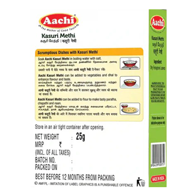 Aachi’s dedication to quality means each pack is filled with fenugreek leaves that are carefully dried and packed to preserve their full flavor and aroma.