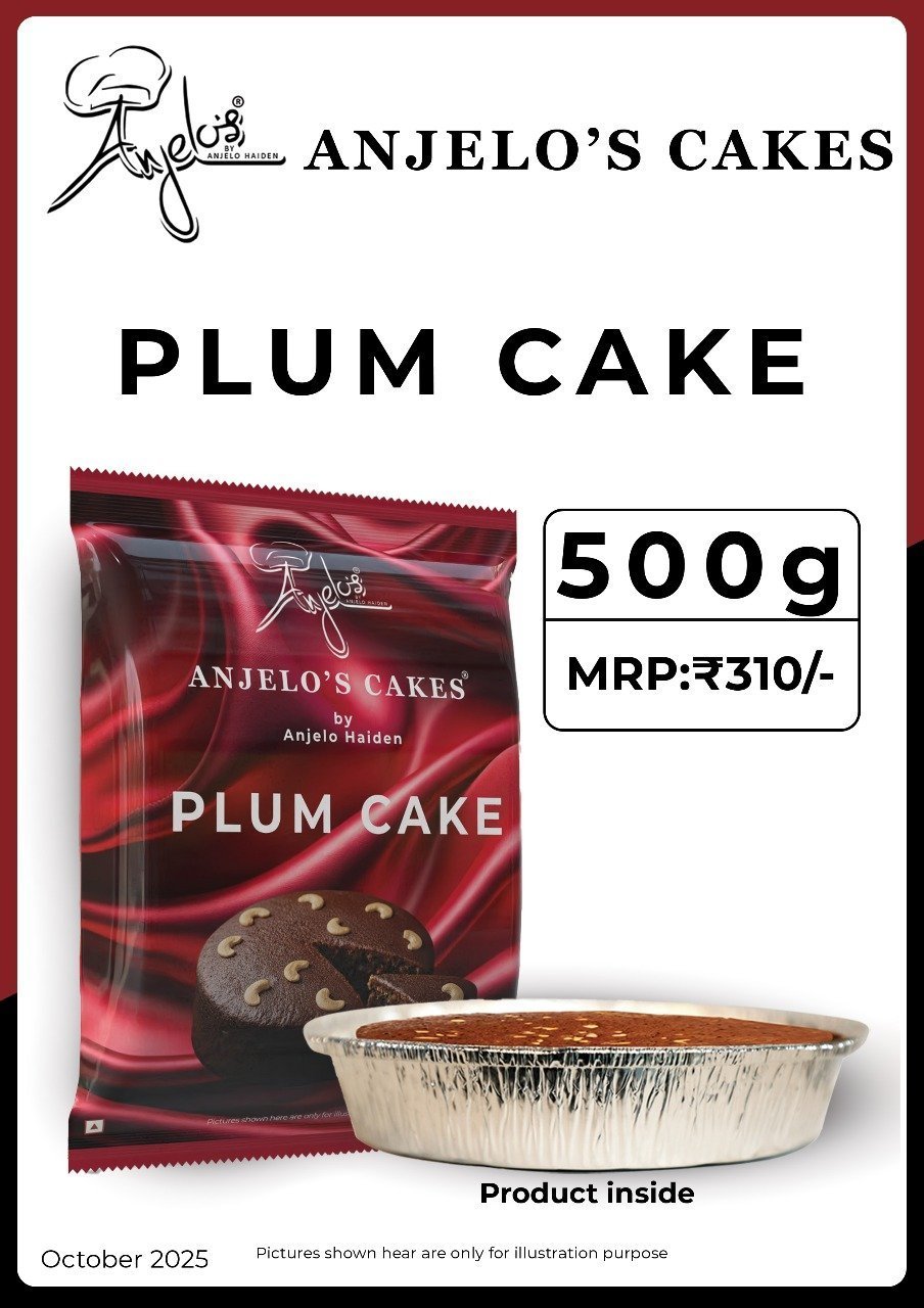 Anjelo’s Confectionery Plum Cake Normal 500 Grams is perfect for Christmas, festivals, birthdays, or casual tea-time treats. Its soft, moist texture and rich fruity flavor make it a favorite among all age groups.