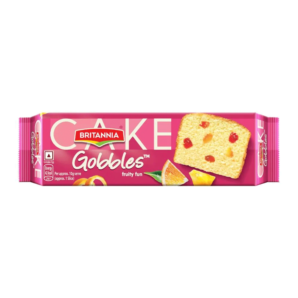 Order your Britannia Gobbles Fruity Fun Cake today and enjoy the soft, fruity goodness in every bite!
